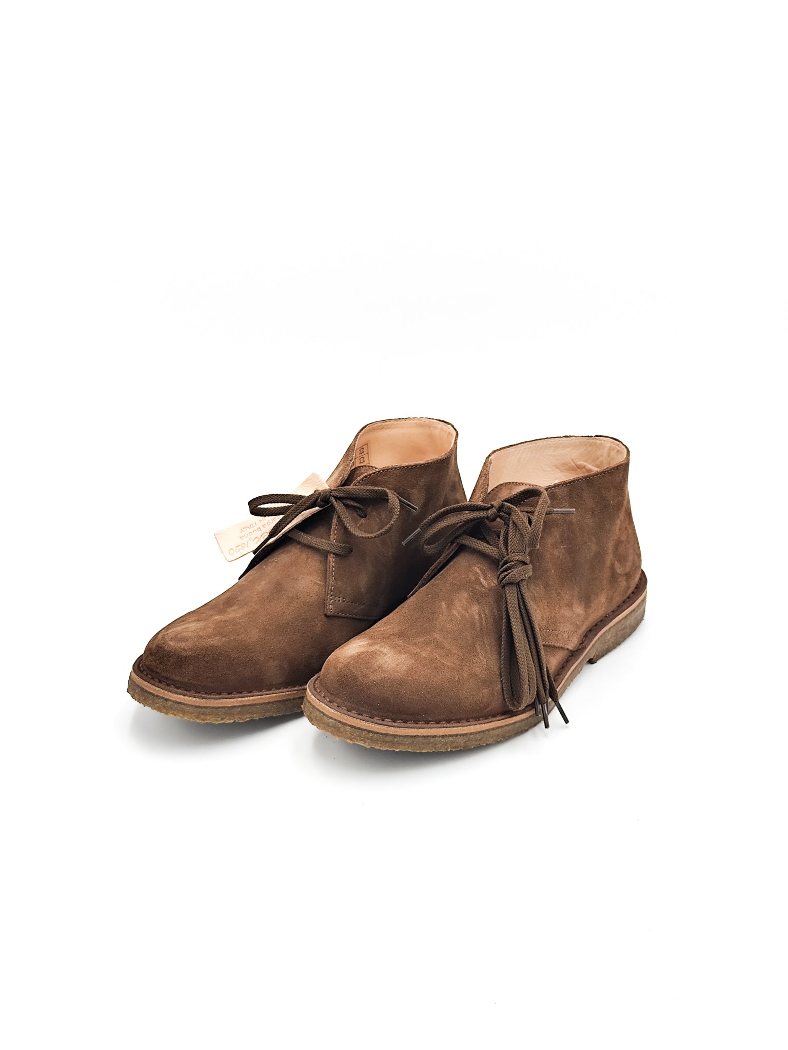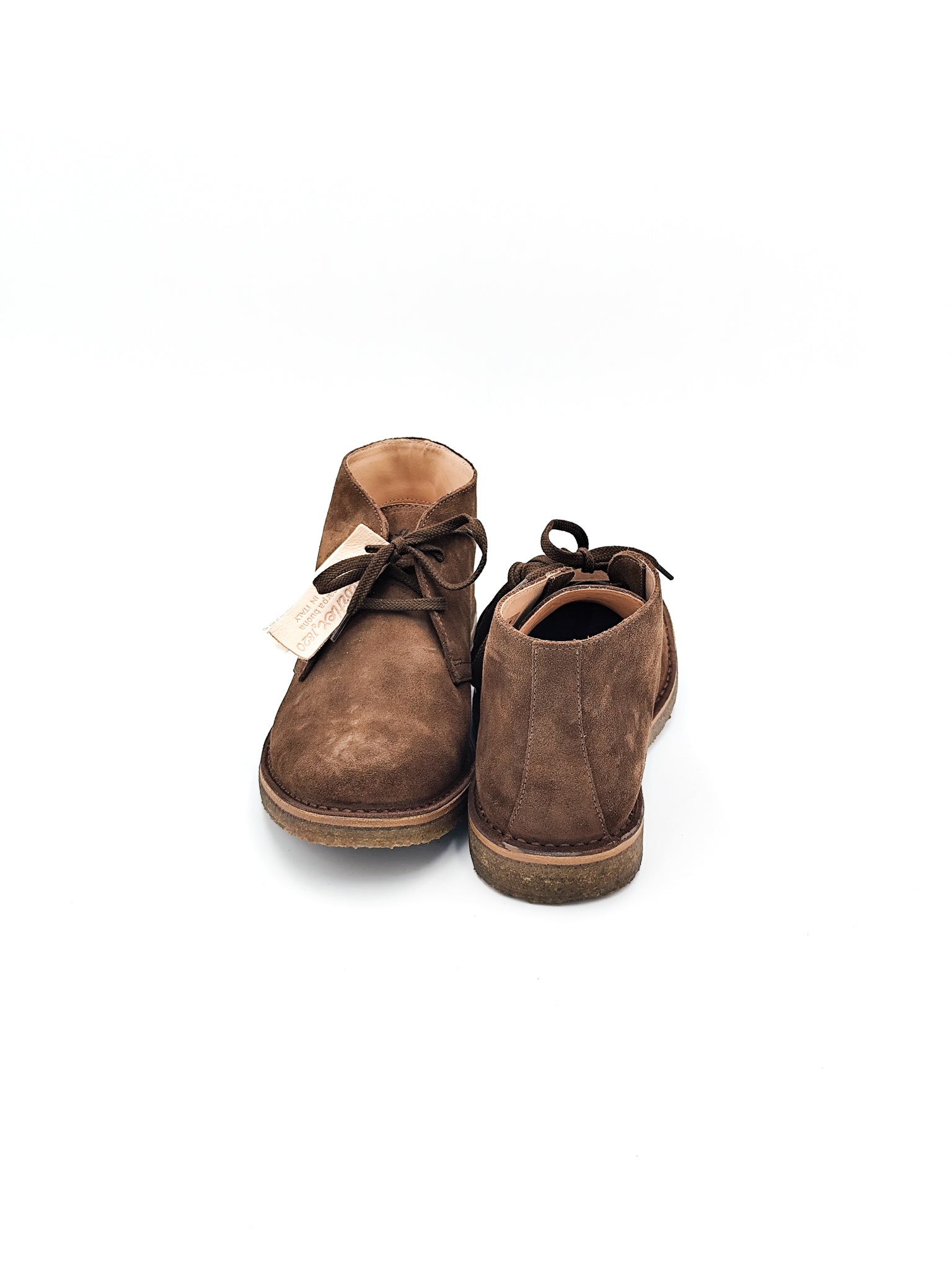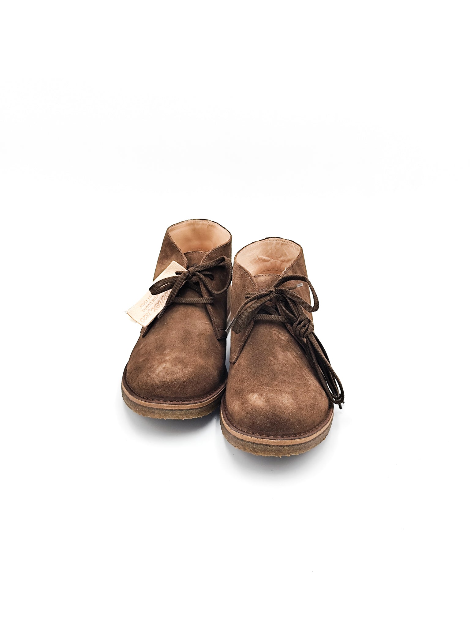 Polacchino in suede marrone chiaro con lacci tono su tono e suola flessibile. Stile casual, materiali naturali e comfort che dura tutto il giorno.