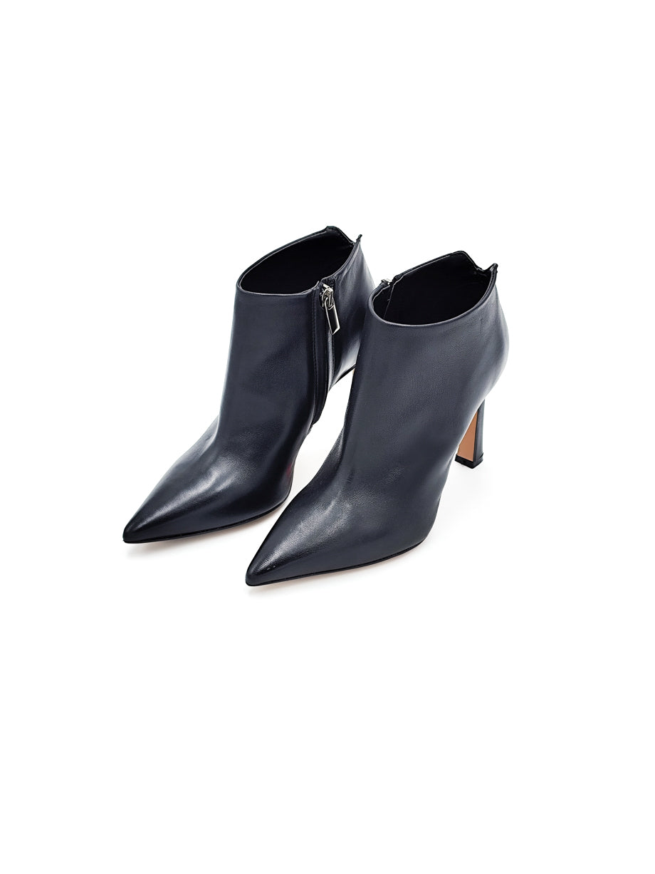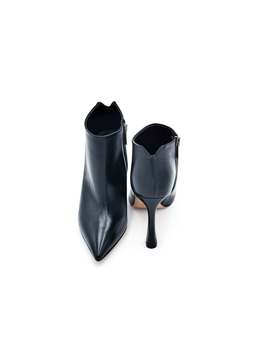 Stivaletto in pelle nero, ideale anche da indossare con le gonne essendo basso sulla caviglia. Fondo con 1/2 piantina in gomma e altezza tacco 9 cm.