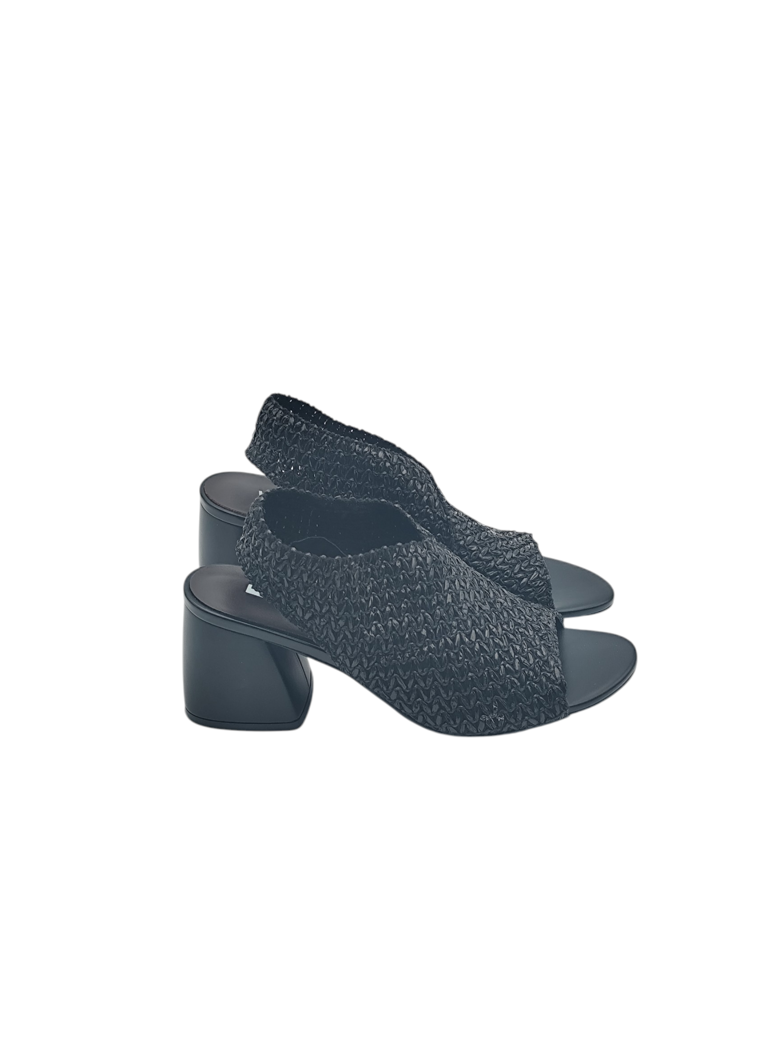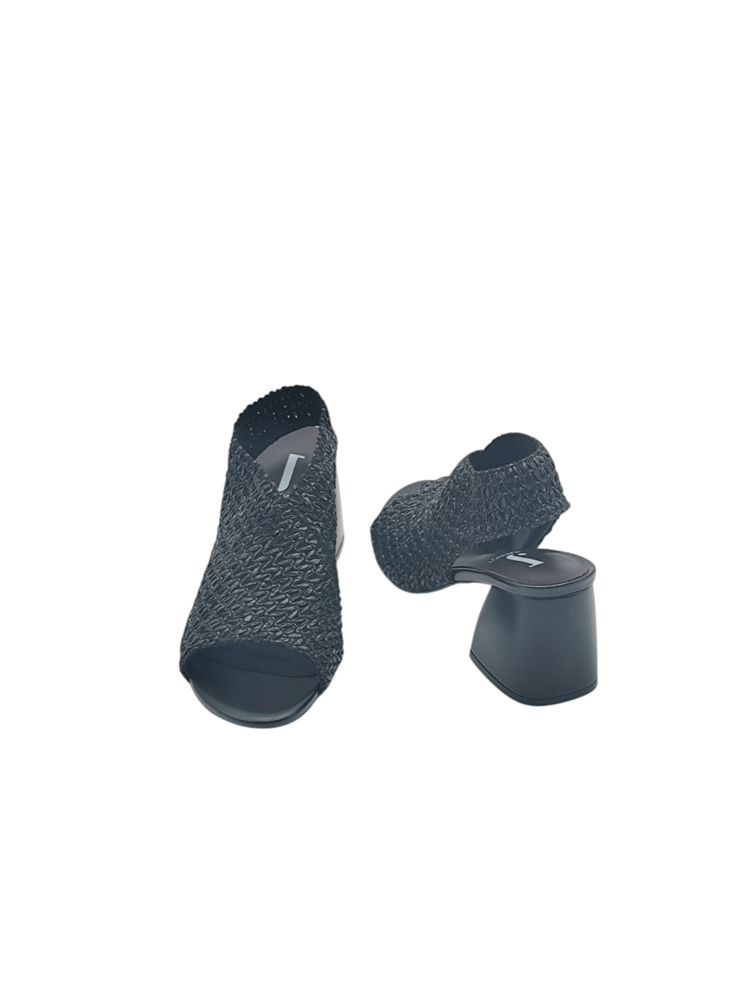 Sandalo in rafia elasticizzata colore NERO, tacco 6 cm, fondo gomma. Un sandalo molto pratico e comodo grazie anche al tacco largo.