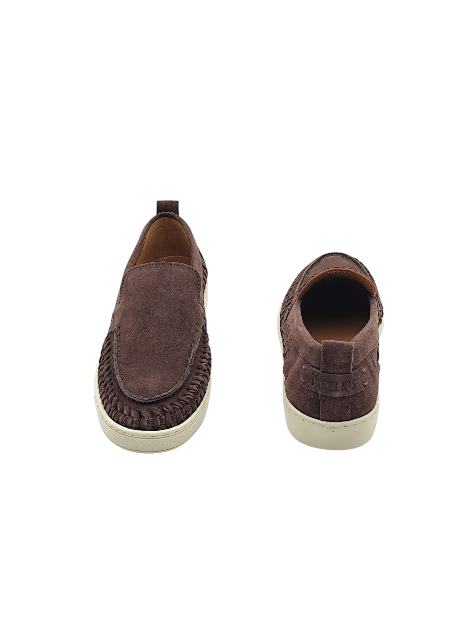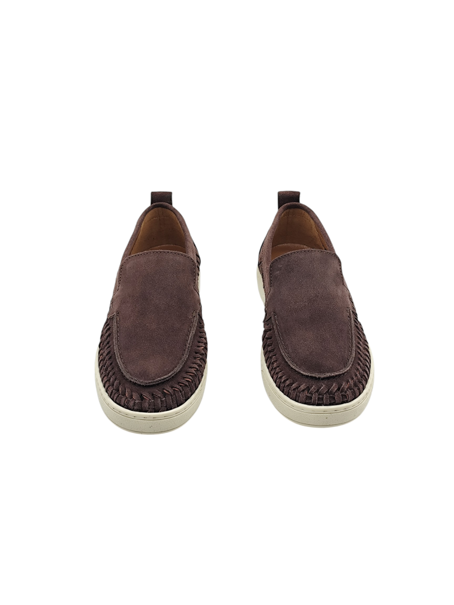 Mocassino in camoscio testa di moro con lavorazione intrecciata ai lati. Fondo gomma cucito e soletta interna rimovibile e rialzata. Un mocassino sportivo molto comodo e fresco da usare come alternativa ad una sneakers nei mesi più caldi.