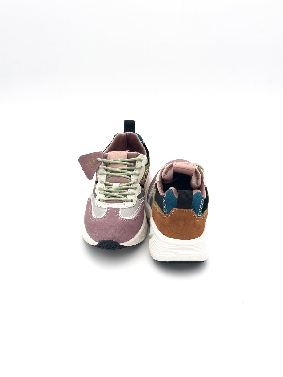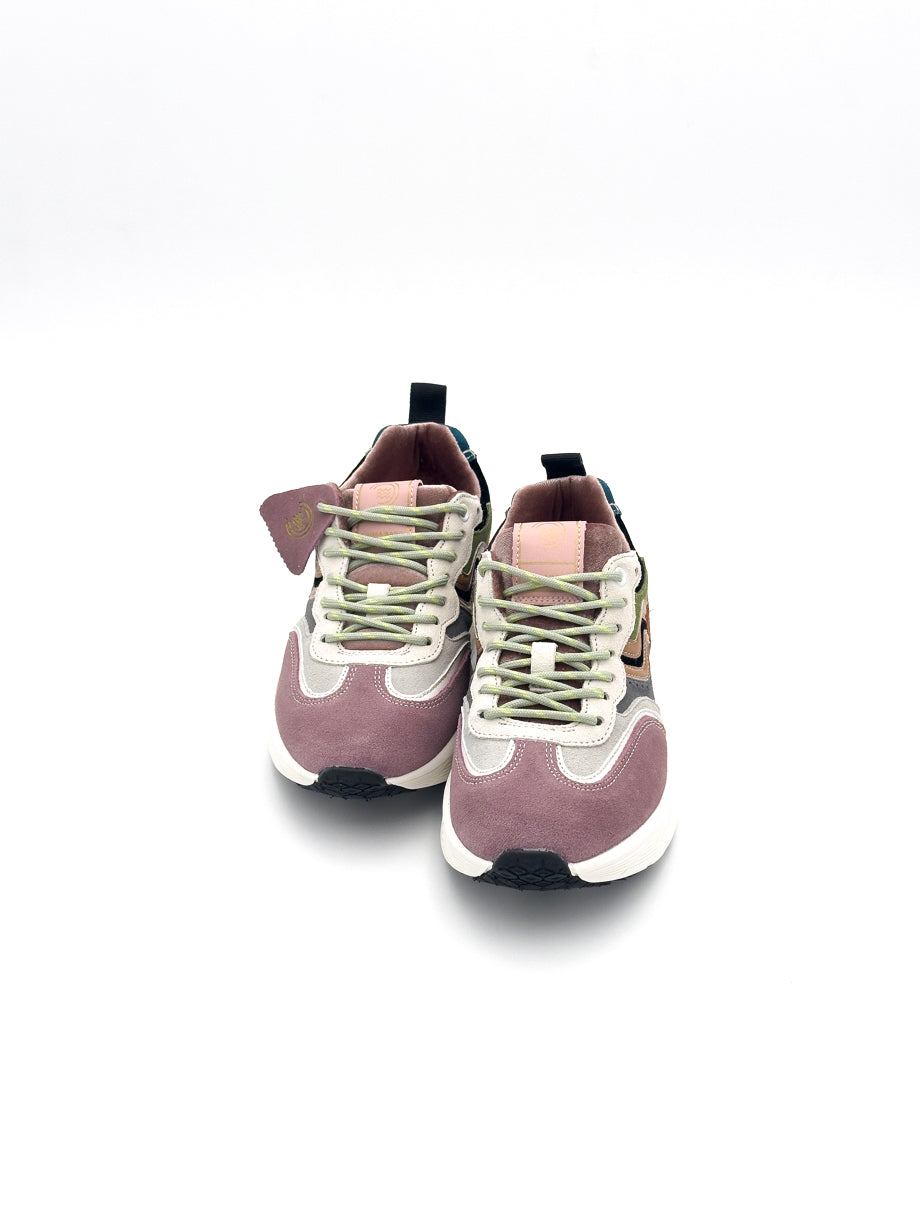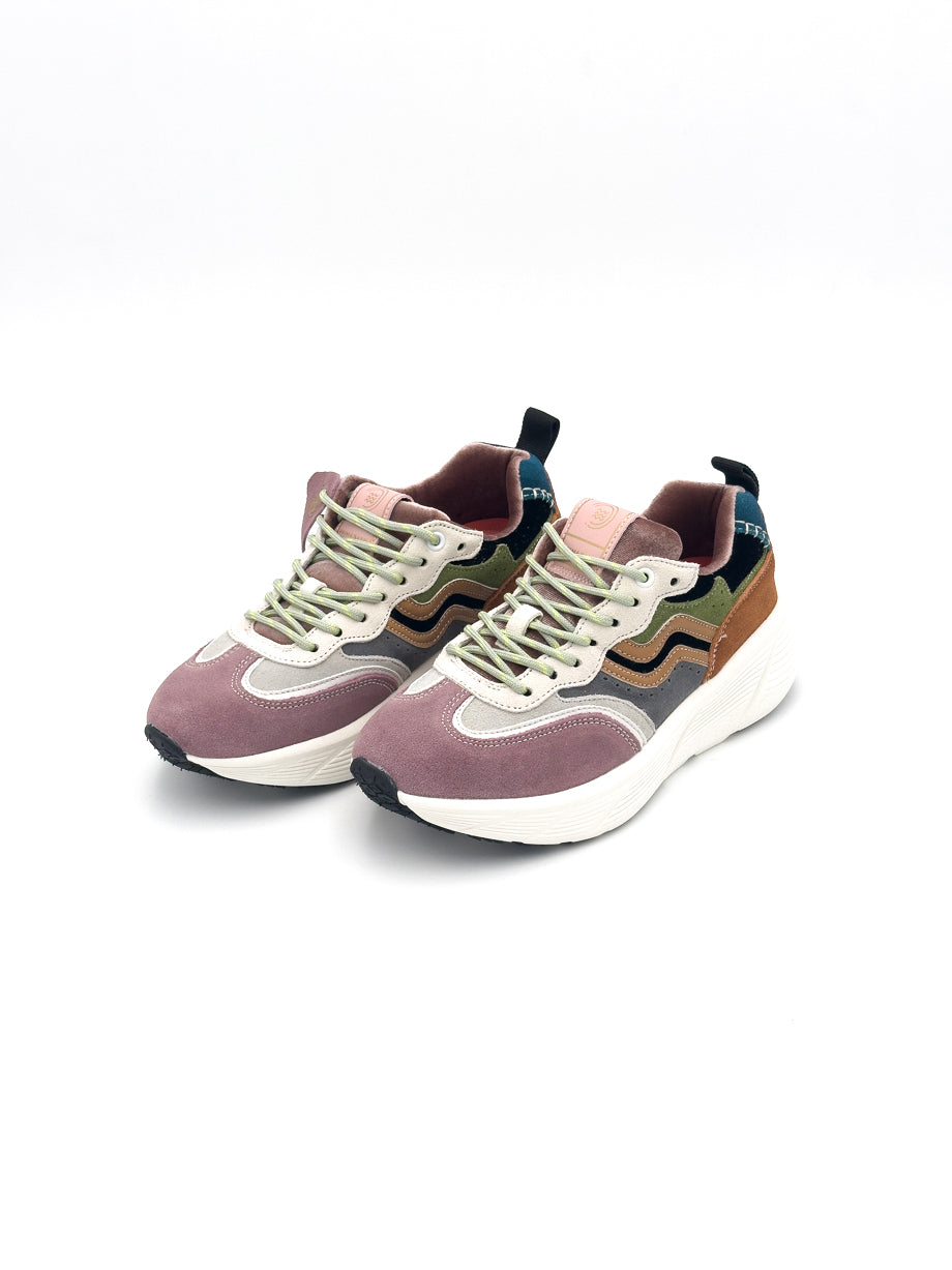 Sneaker in suede rosso con finitura vellutata. Lacci intrecciati e suola in gomma beige per un look deciso e contemporaneo.